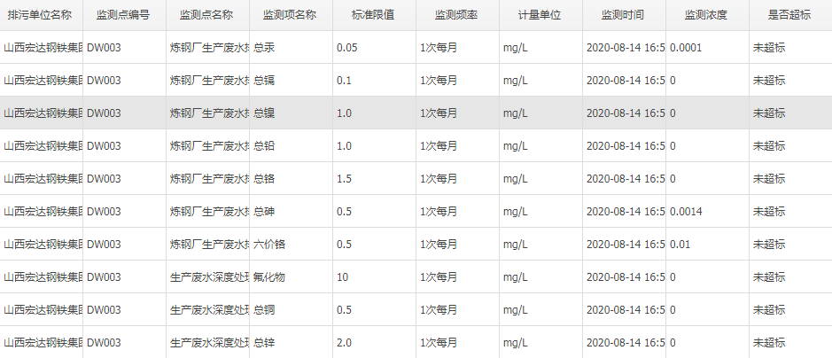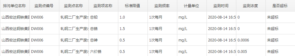 2020年八月份自行監(jiān)測數(shù)據(jù)